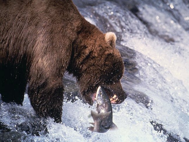 Grizzly beim Lachse fangen