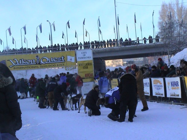 Yukonquest Start in Fairbanks am 9. Februar 2002